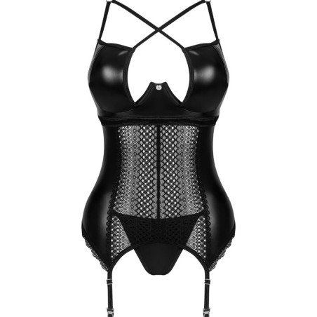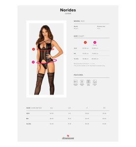 Immerse yourself in a sensation of luxury and elegance with our Norides 3-piece lingerie set. Featuring a chic and refined aesthetic, this ensemble is designed to make you feel sexy and sophisticated on any special occasion. This black set includes a thong, a bra, and a garter belt, offering a perfect fit with its multi-level closure and adjustable straps. The underwires delicately accentuate the bust, while the shiny pendant subtly catches the eye.